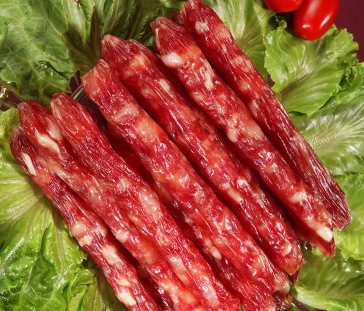 大有爱吃的广式香肠占有中国香肠市场的60%以上,广式香肠是将瘦肉经粗绞、肥膘经切丁,配以辅料,灌入天然肠衣或人造肠衣经晾晒烘干而成;由于广式香肠加入较多的蔗糖和酒,加之高温高湿的环境,使得广式香肠在加工、储藏和销售过程中很容易形成风味物质。